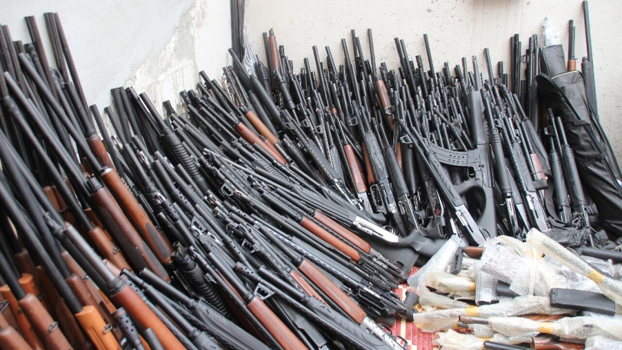 Hatay’da düzenlenen operasyonda, bir kamyon dolusu av tüfeği ve tabanca, 1 adet uzun namlulu silah, 2 adet Uzi ve Akrep makineli tabanca, şarjörler ile mermiler ele geçirildi.