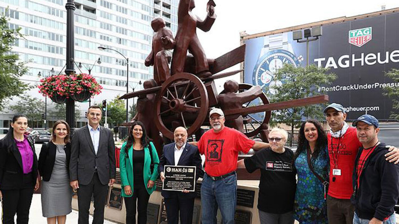 Kentteki Haymarket Meydanı'nda bulunan ikonik anıta HAK-İŞ Konfederasyonu plaketinin de yerleştirilmesi Illinois İşçi Tarih Topluluğu (ILHS) tarafından kararlaştırıldı. Anıt önünde düzenlenen törene HAK-İŞ Konfederasyonu Genel Başkanı Mahmut Arslan, Türkiye'nin Chicago Başkonsolosu Umut Acar, ILHS Başkanı Larry Spivack ve bazı davetliler katıldı.
