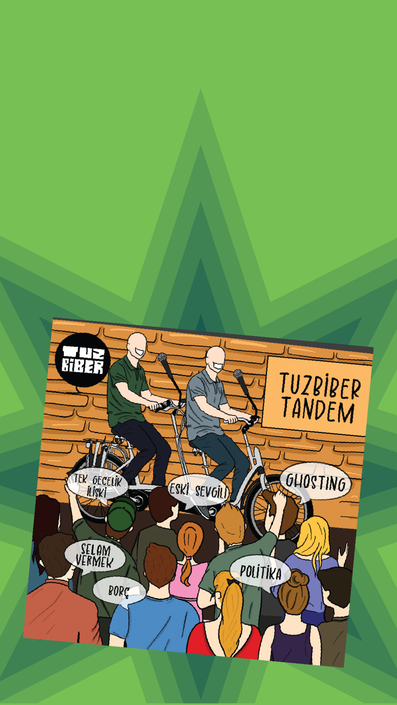 Yepyeni konsepti ile TuzBiber Tandem Hillside LIVE sahnesinde! TuzBiber stand up’ın yeni konsepti tamamen interaktif ve seyircilerin aklından geçenlerle ilgili. Seyirciler komedyenlerin hangi konuda şaka yapmasını istiyorlarsa yerlerinden bağırıyorlar. Bir tür zihin boşaltma seansı!