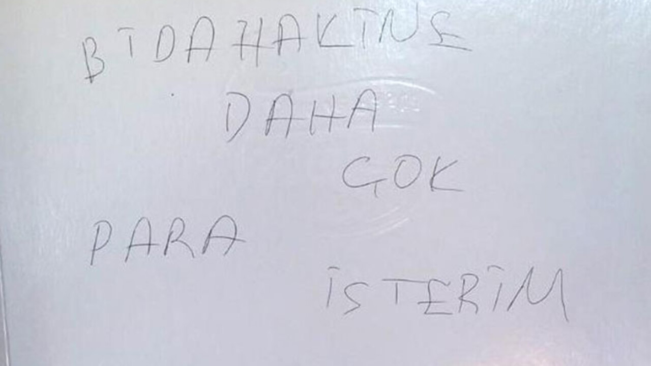 Güvenlik kameralarına yansıyan görüntülerde, sütlaç yiyen ve kola içen şüphelinin, önce peçeteye not yazdığı görülüyor. Bunu beğenmeyen zanlının, daha sonra ise tatlı kutusuna not yazarak iş yerinden ayrılması da kayıtlarda yer alıyor.