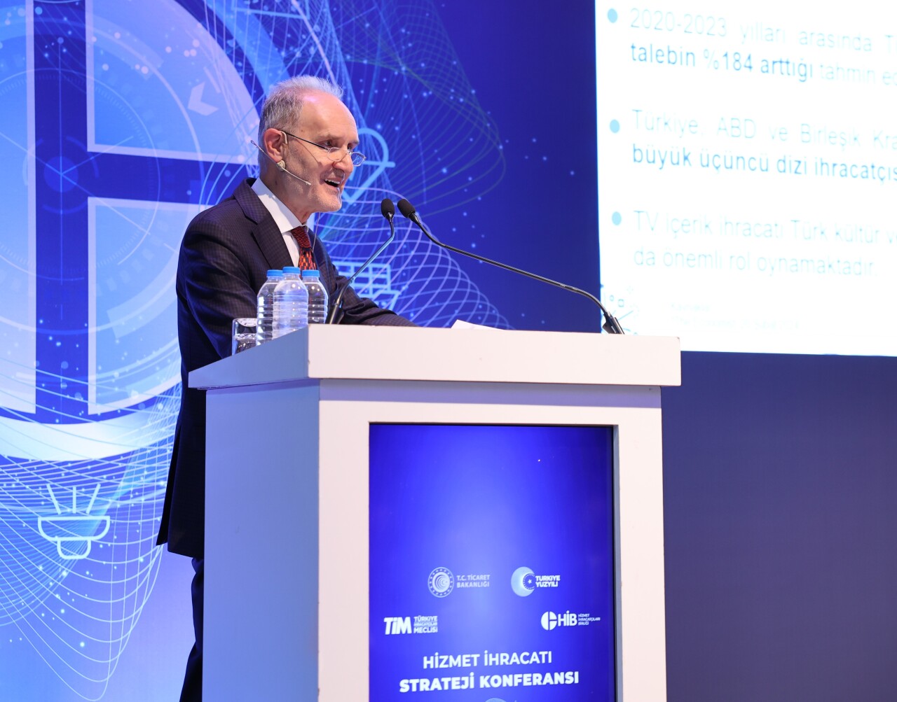 Türkiye İhracatçılar Meclisi (TİM) Başkanı Mustafa Gültepe ise ihracat yapan 27 sektörün tamamında 2024-2028 dönemi hedefleri özelinde istişare toplantıları gerçekleştirdiklerini belirterek, hizmet sektörlerinin en çok öneri ileten sektörler arasında yer aldığını kaydetti. 2028 yılında 200 milyar dolarlık hizmet ihracatı hedefi olduğunu hatırlatan Gültepe, “Hizmet ihracatı, toplam dış ticaret dengesini önemli ölçüde etkileyecek” ifadesini kullandı. “2023’te 7,8 trilyon dolara ulaşan küresel hizmet ihracatından 100 milyar dolar ile yüzde 1,3 pay aldık” diyen Gültepe, “Pandemi dönemindeki küresel gerilemenin ardından, hizmet ihracatımızda yeni bir seviyeye ulaştığımızı net bir şekilde görüyoruz. 2024 yılı için toplam ihracatta 377 milyar dolar hedefimiz var. Ortak akıl ve istişareyle tüm hedeflerimize ulaşacağımıza inanıyorum. Bugün, sektörümüzün tüm paydaşlarıyla bir arada olmaktan ve ortaya çıkan bu tablodan son derece mutluyum” dedi.