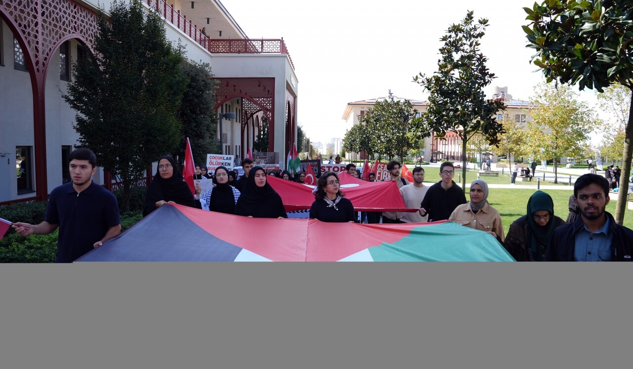 İHÜ Mütevelli Heyeti Başkan Vekili Necmeddin Bilal Erdoğan ile Rektör Prof. Dr. Atilla Arkan da protesto gösterisine katıldı.