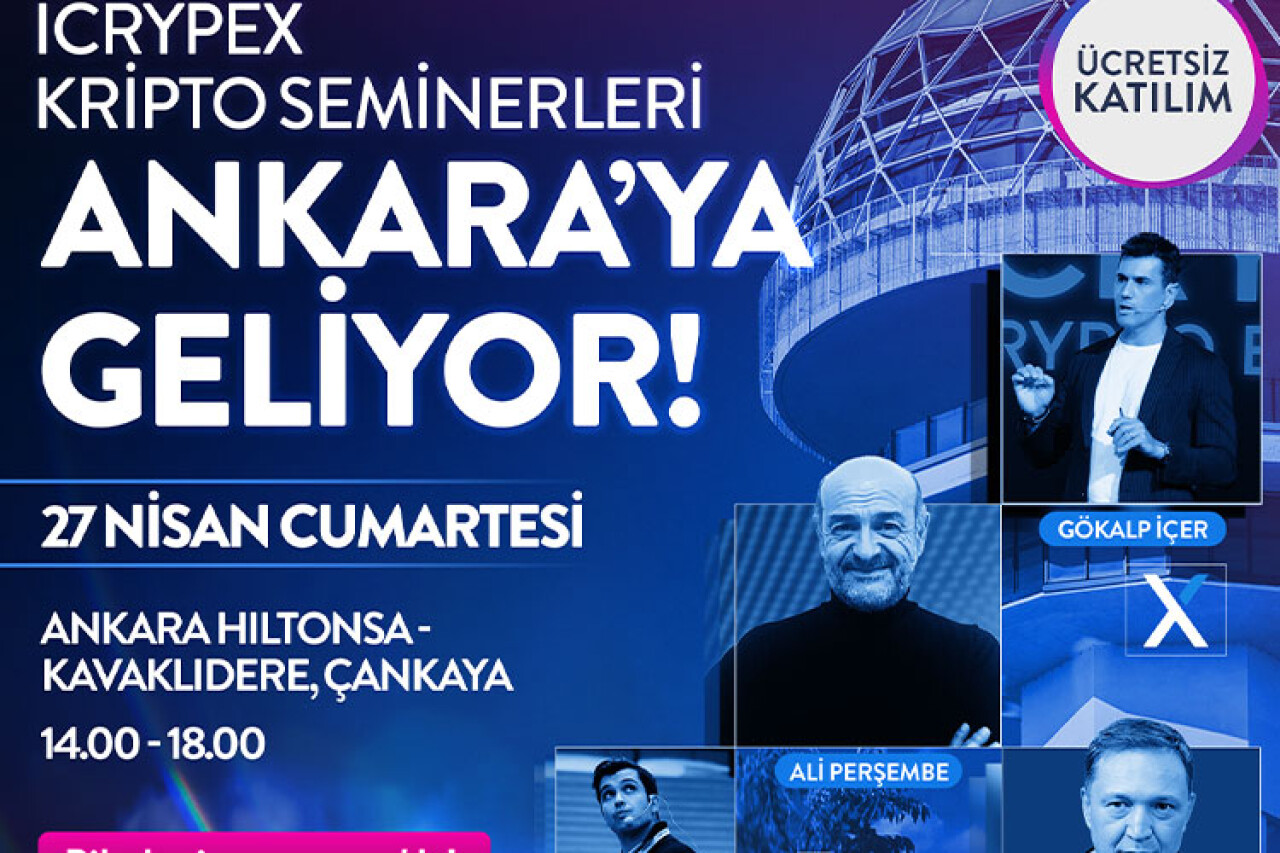 Türkiye'nin öncü kripto para platformlarından ICRYPEX, kripto ve ekonomi başlıklarıyla düzenleyeceği seminerlerde kripto teknolojileri ve blok zinciri, dijital varlıklara yönelik öngörüler, ekonomideki gelişmeler gibi birçok farklı konuyu ele almakla beraber odak noktasına finansal okur-yazarlığa katkı sağlamayı yerleştiriyor. Farklı tarihlerde Türkiye’nin dört bir yanında düzenlenecek bu seminerlerden dördüncüsünün gerçekleşeceği 27 Nisan’da gerçekleşecek “Ankara Kripto ve Ekonomi Semineri” kripto para ve ekonomi dünyasında önemli bir buluşma noktası olacak.