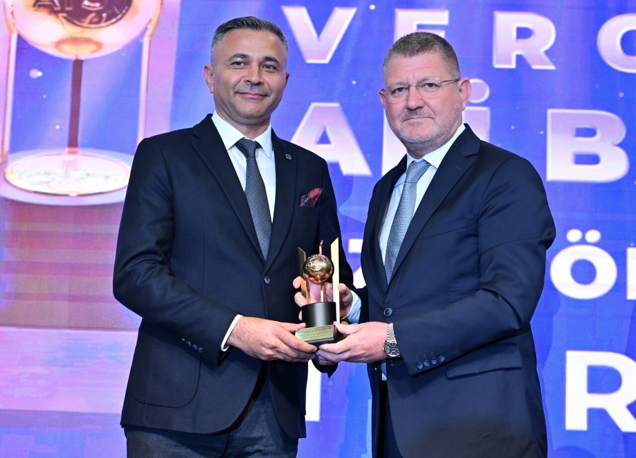 IC Holding Turizm Grubu Mali İşler Direktörü İsa Ergin, ödülü Antalya Ticaret ve Sanayi Odası Meclis Başkanı Ahmet Öztürk'ün elinden aldı.