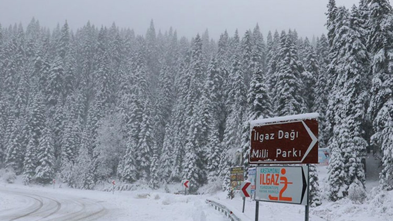 Kastamonu-Çankırı sınırındaki Ilgaz Dağı'nda gece saatlerinden itibaren etkili olan yağışın ardından kar kalınlığı 10 santimetreyi geçti.