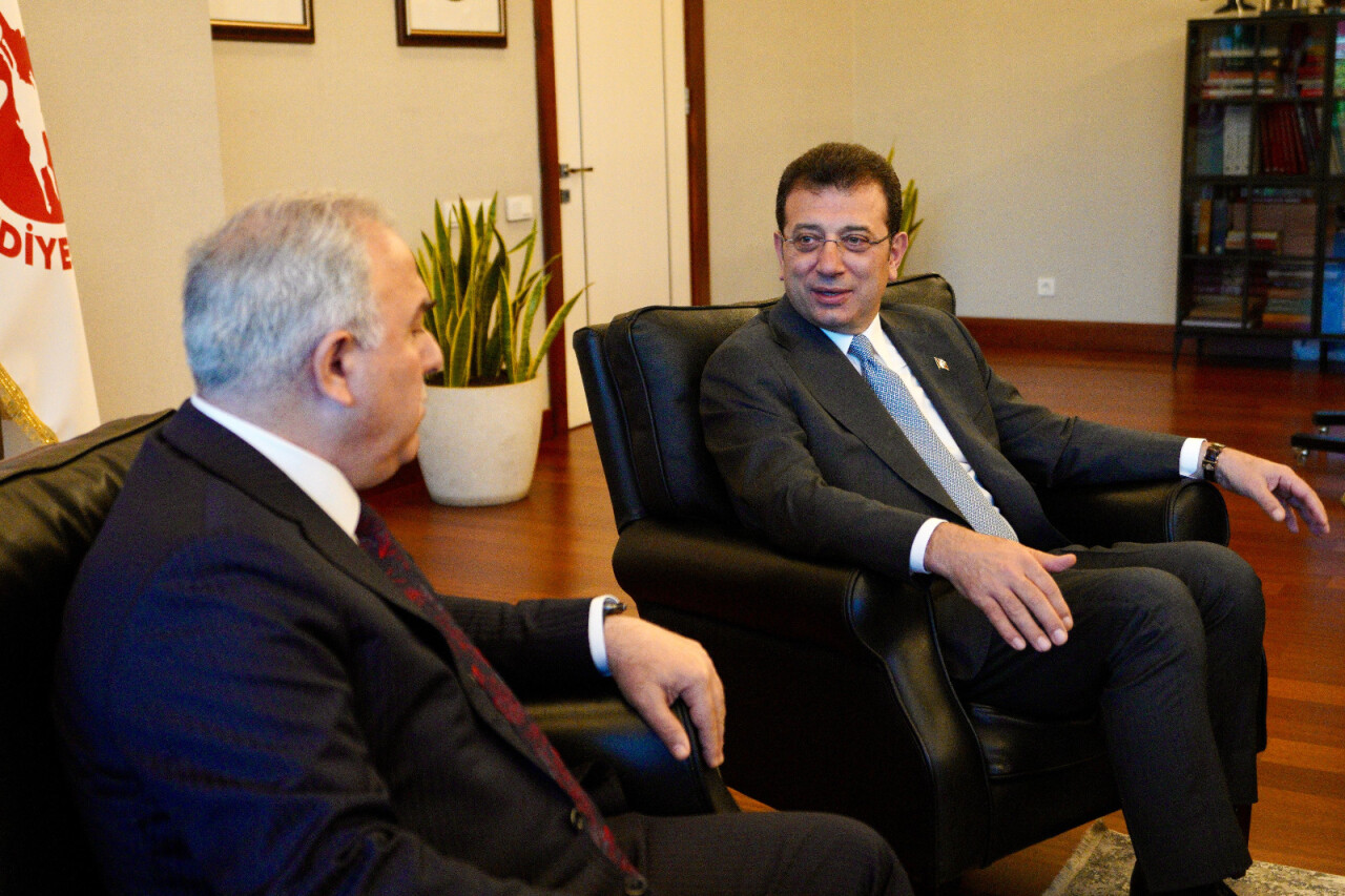İmamoğlu, Fatih Belediye Başkanı Ergün Turan’a tebrik ziyaretinde bulundu.