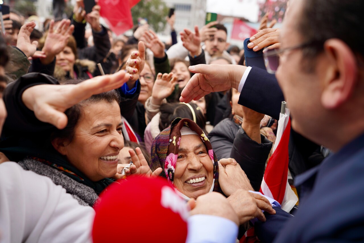 İstanbul Büyükşehir Belediye (İBB) Başkanı Ekrem İmamoğlu, CHP Kağıthane Belediye Başkan adayı Tonguç Çoban ile birlikte, Nurtepe Meydanı’nda düzenlenen halk buluşmasına katıldı. Dr. Dilek Kaya İmamoğlu da halk buluşmasında eşi İmamoğlu’nu yalnız bırakmadı. Meydanı, evlerinin balkonları, pencereleri ve çatılarını dolduran vatandaşlar, İmamoğlu ve Çoban’a sevgi gösterilerinde bulundu. “Eğer vatandaşların yüzünü güldürebilen bir Başkansam, ben dünyanın en başarılı Belediye Başkanıyım” diyen İmamoğlu, yurttaşların Ramazan aylarını kutladı.