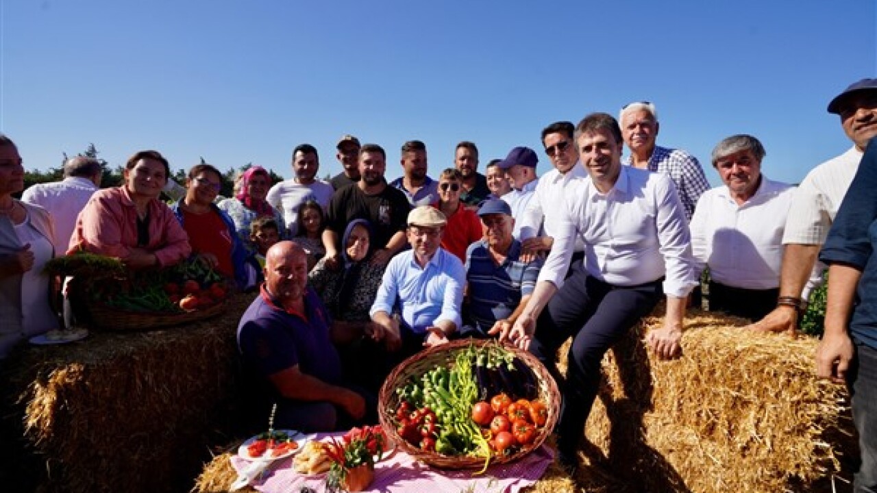 Çakıl Köyü’ndeki tarlalarda üretici çiftçilerle buluşan İmamoğlu, İBB hibesi fidelerden elde edilen ürünlerden tattı.