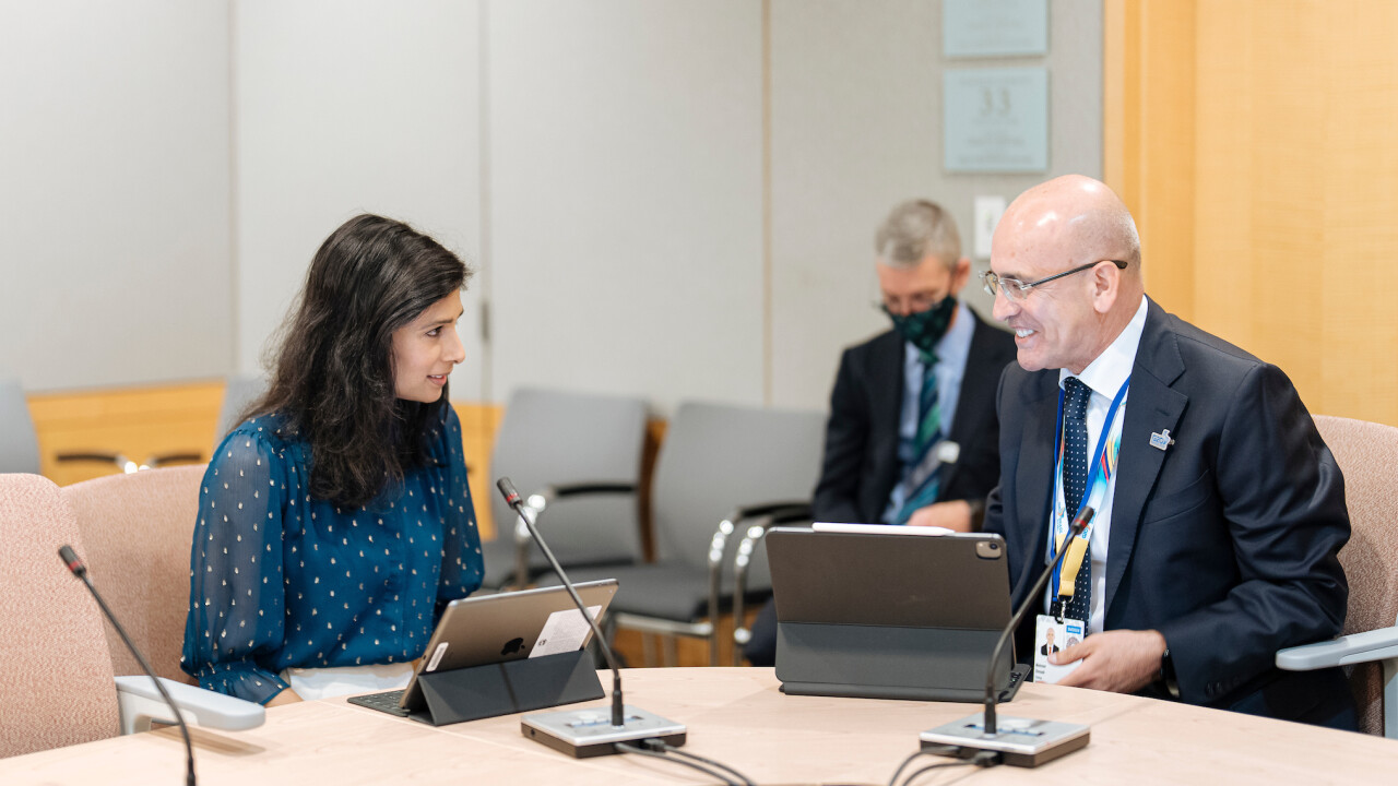 Hazine ve Maliye Bakanı Mehmet Şimşek, Uluslararası Para Fonu (IMF) Başkan Yardımcısı Gita Gopinath ile bir araya geldi.