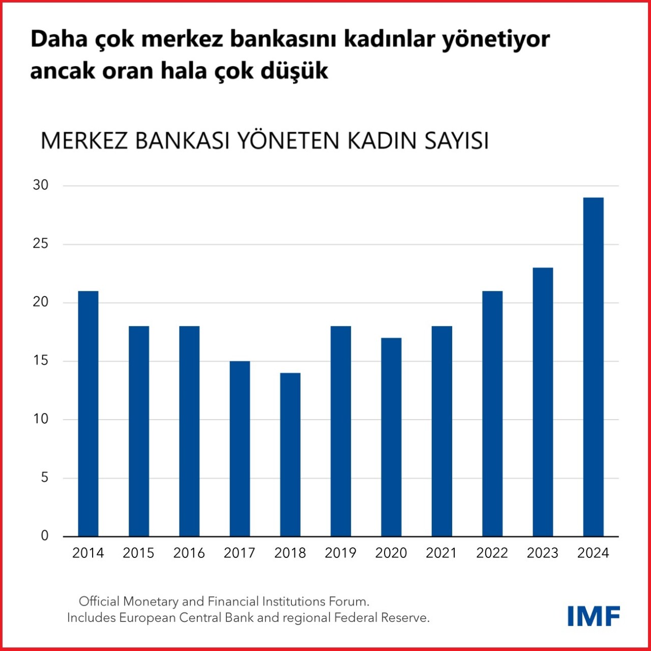 Geçen yıl 23 olan guvernör pozisyonundaki kadın sayısı bu yıl 29'a yükseldi. Ancak Resmi Para ve Finans Kurumları Forumu tarafından Nisan ayında yayınlanan bir rapora göre, bu durum dünyadaki 185 merkez bankasında kadın liderlerin oranını sadece yüzde 16'da bıraktı.