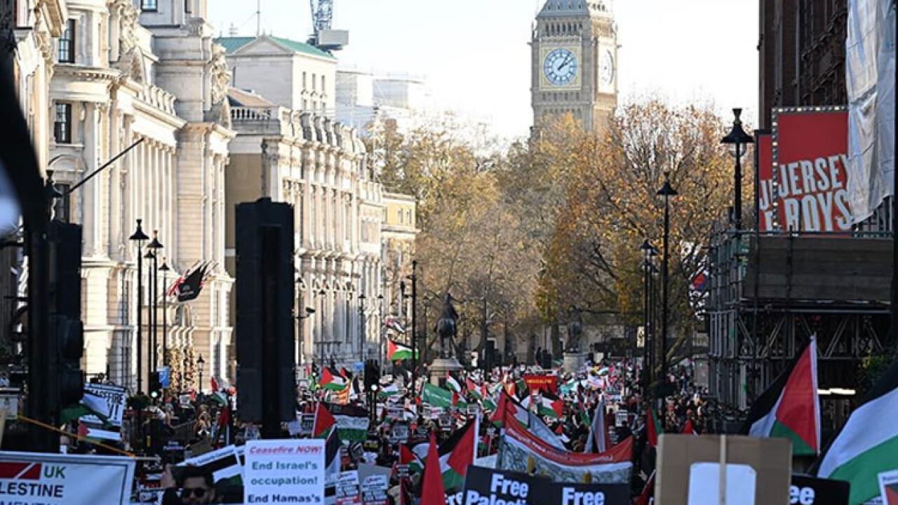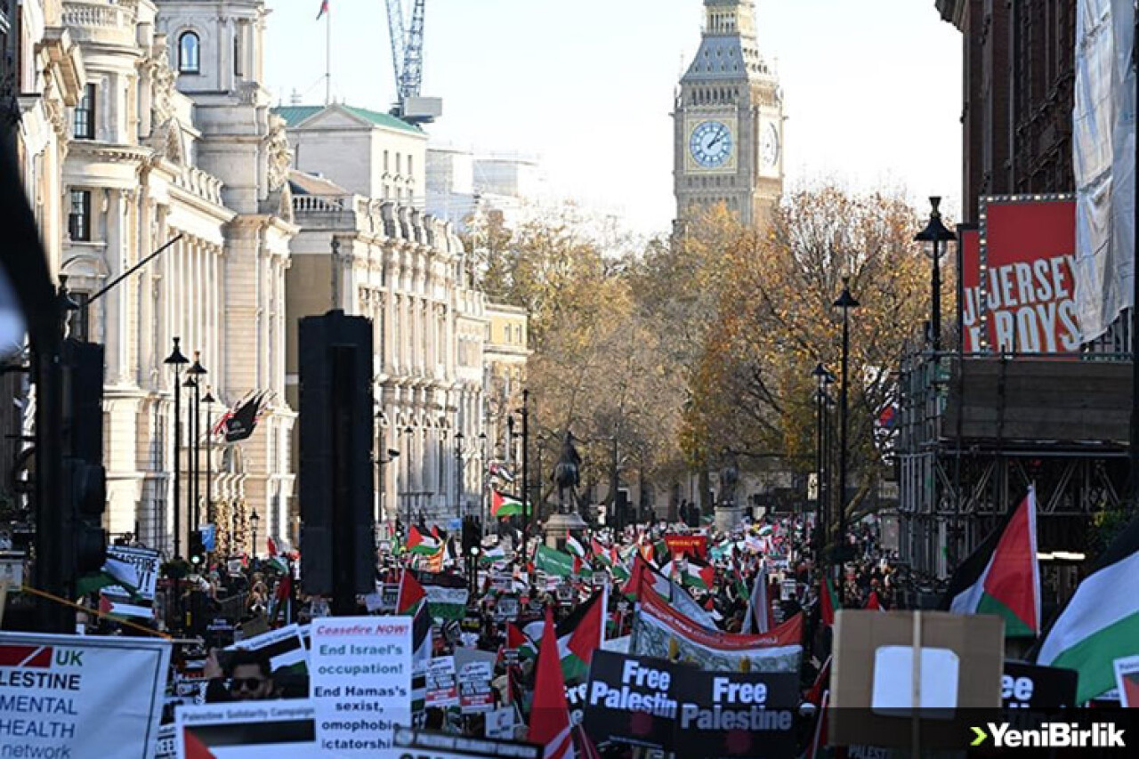 Filistin'le dayanışma yürüyüşü, İngiltere Parlamentosu önünde sona erdi.