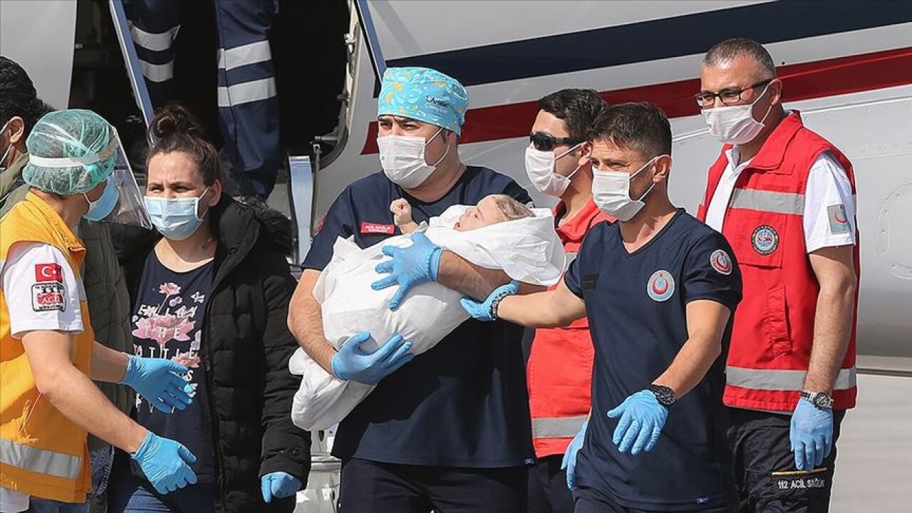 Londra'nın Luton Havalimanı'ndan kalkan, siyam ikizleri Derman ve Yiğit ile anneleri Fatma ve babaları Ömer Evrensel'i taşıyan Sağlık Bakanlığına ait hava ambulansı, sabah saatlerinde Esenboğa Havaalanı'na iniş yaptı.