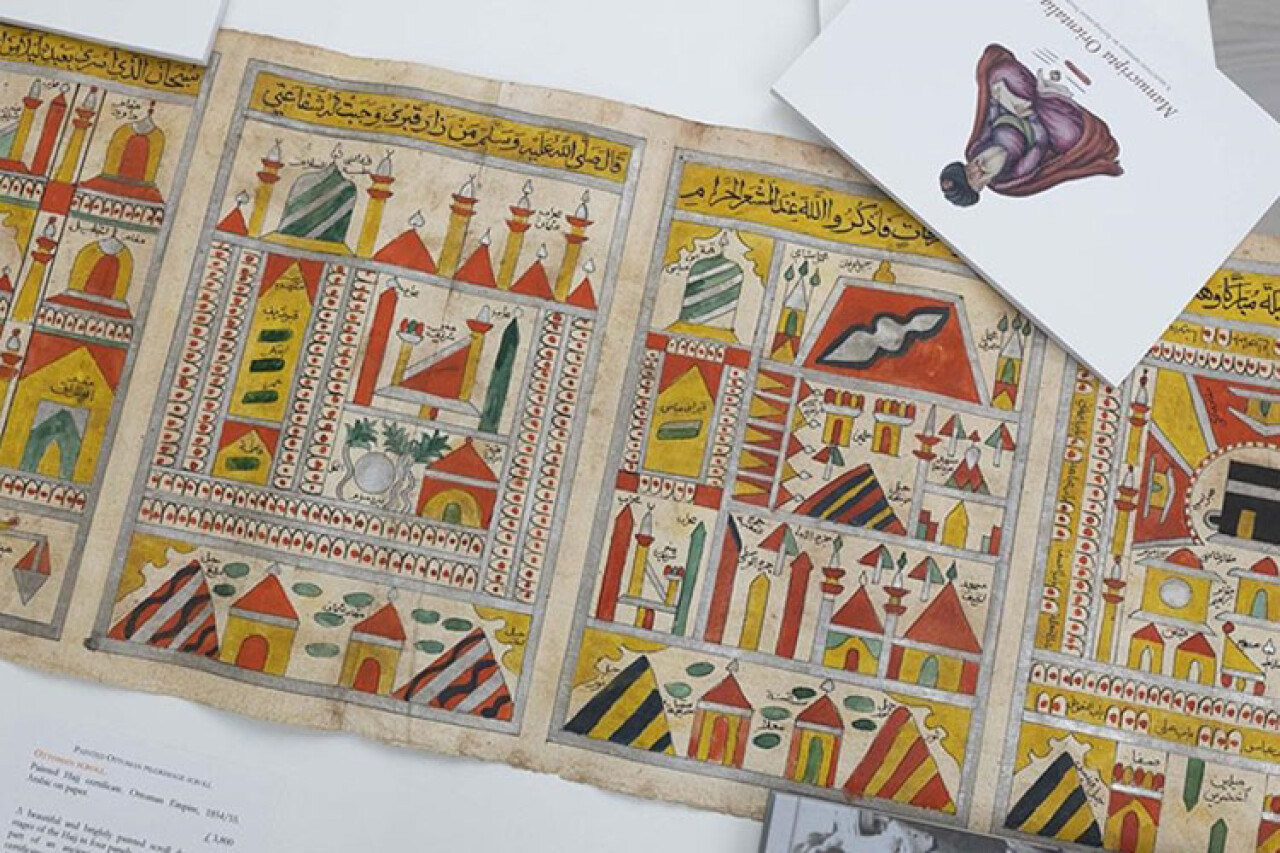 Antiquariat Inlibris'ten Christopher Frey satışa çıkardıkları eserler arasında, nadir olması ve bugüne dek sağlam ulaşmasıyla dikkati çeken bir hac kılavuzu ve hacılık sertifikası bulunduğunu kaydetti.