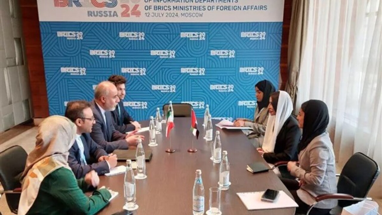 BRICS üye ülkeleri sözcüleri ve bilgi merkezleri başkanlarının katıldığı toplantıya katılan İran Dışişleri Bakanlığı Sözcüsü ve Bakanlığın Kamu Diplomasisi Merkezi Başkanı Nasser Kanaani, etkinliğin aralarında BAE Dışişleri Bakanlığı Sözcüsü ve Bakanlığın Stratejik İletişim Dairesi Başkanı Afra el-Hameli ile bir araya geldi.