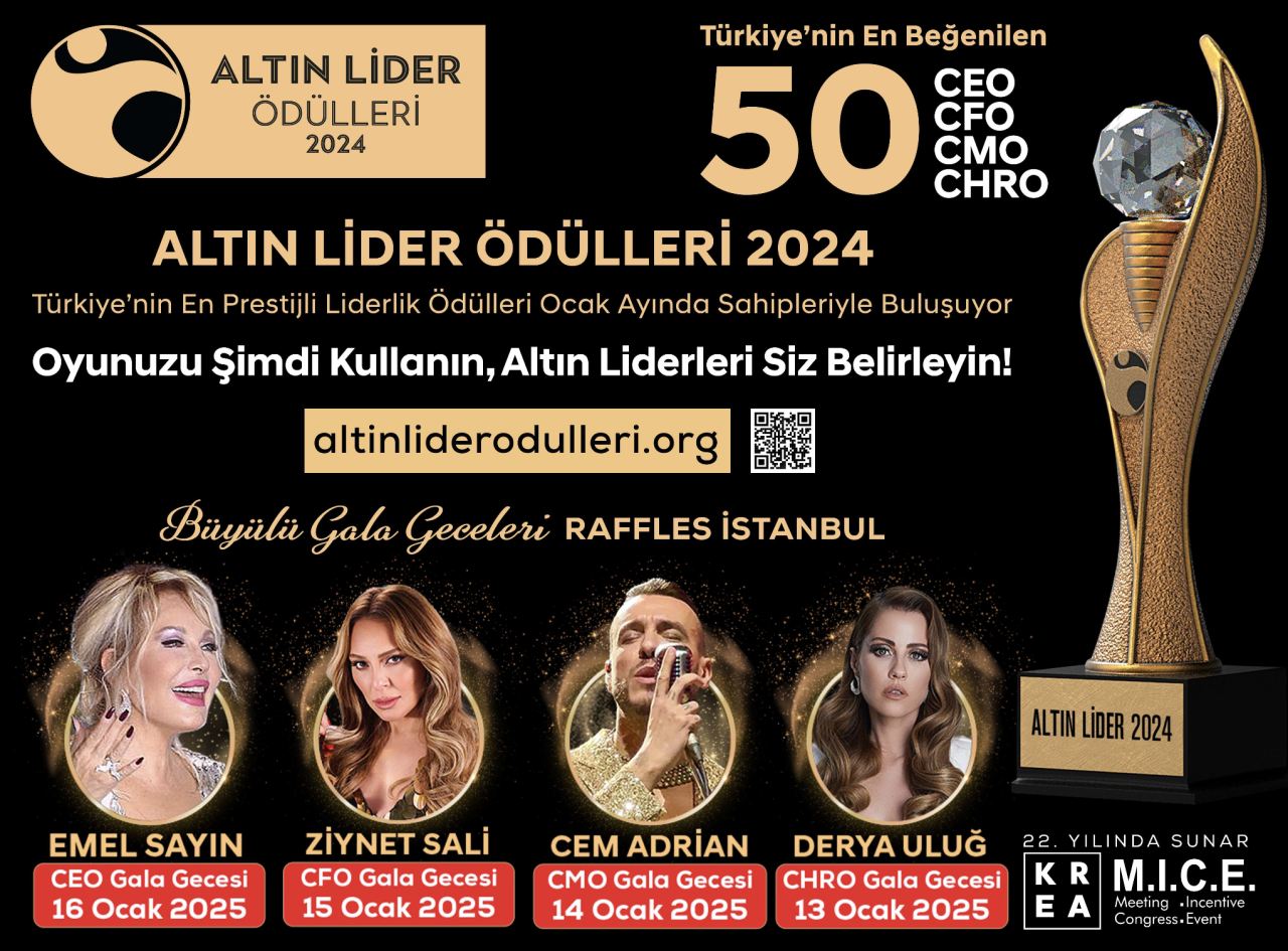 Türkiye’nin önde gelen toplantı ve etkinlik şirketlerinden KREA M.I.C.E. tarafından 2021 yılında hayata geçirilen ‘Altın Lider Ödülleri’ platformunda bugüne kadar tüm Türkiye’den on binlerce oy kullanıldı. Oylamalar 15 Aralık 2024’de sona erecek ve sonrasında noter huzurunda yapılacak değerlendirmeye göre her kategoride, en fazla oy alan liderler, 2024’ün ‘Altın Lideri’ olarak Ocak ayındaki Gala gecelerinde kamuoyu ile paylaşılacak.