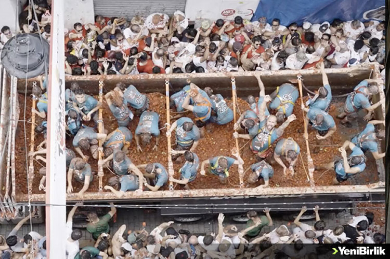 Yeni Birlik Gazetesi İspanya'daki "La Tomatina" festivalinde 120 ton domates havada uçuştu