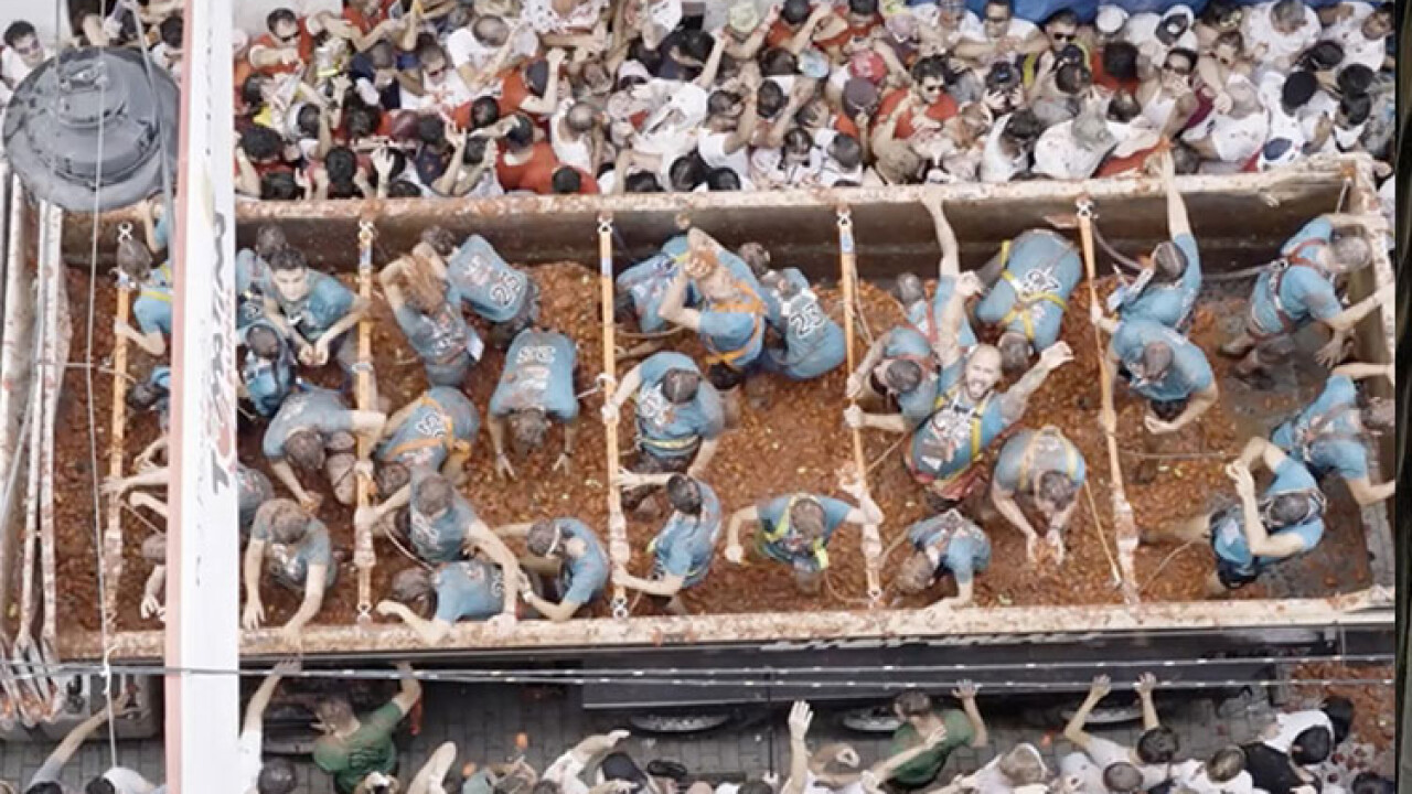 Bunol'un merkezinde düzenlenen ve giriş ücreti 15 avro olan festival kapsamında 120 ton (geçen yıla göre 10 ton daha az) domates 6 kamyonla kasaba merkezine getirildi.