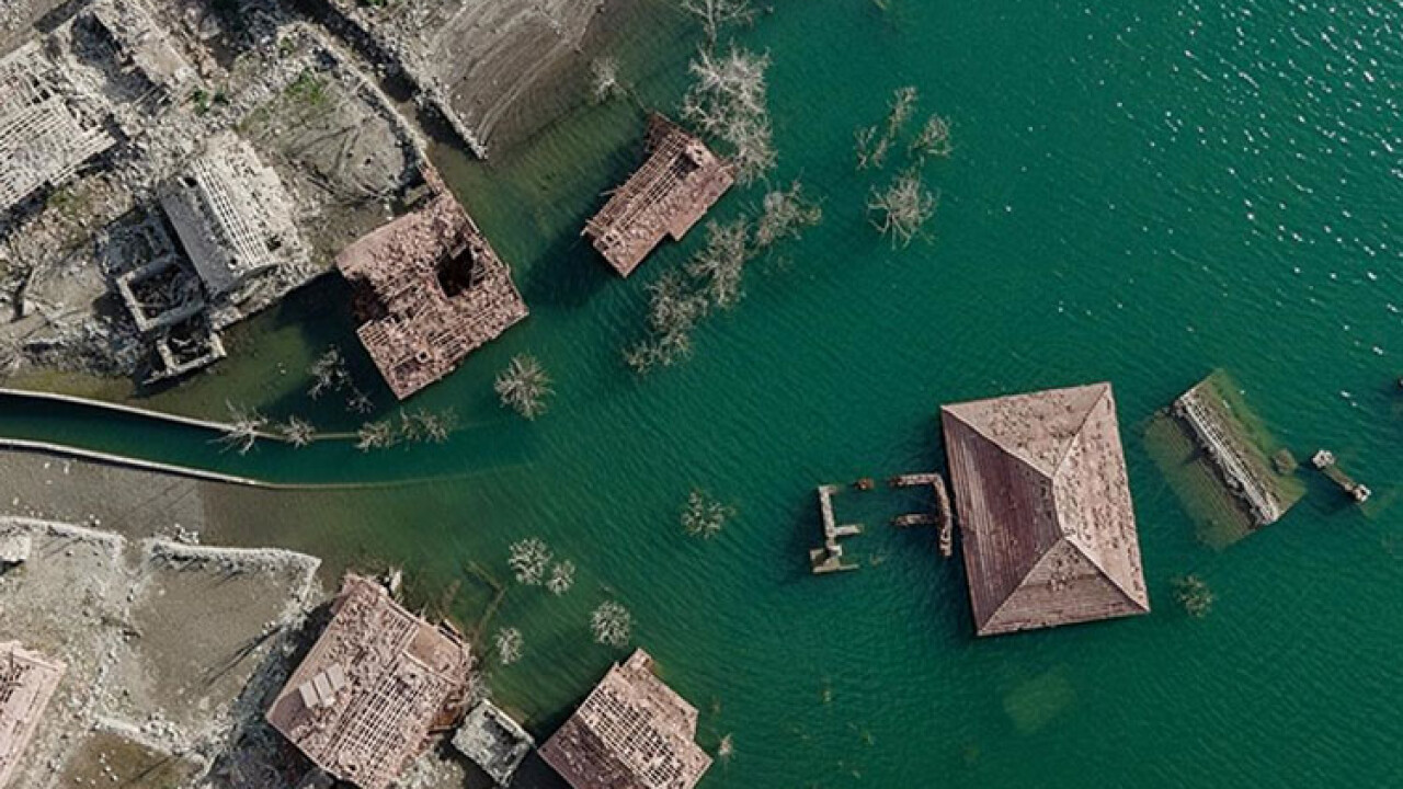 Yıllardır su altında kalan taş evler, yaz döneminde barajdaki su seviyesi azalınca tekrar gün yüzüne çıkıyor. Köylülerin geride bıraktığı eski evler, gün yüzüne çıkınca sonbahar renkleriyle seyirlik görüntü oluşturuyor.