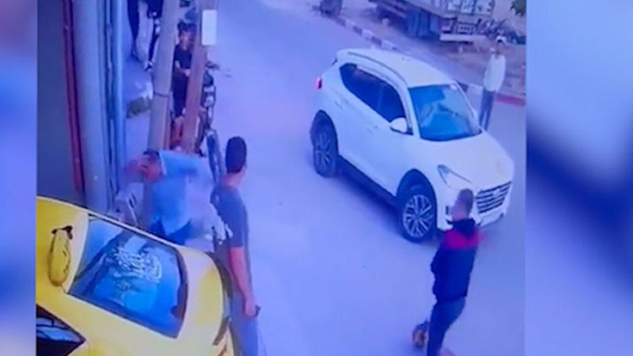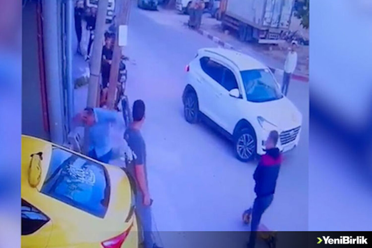 Vurulan adamın küçük kızının korku içinde paniğe kapıldığı görülürken, çevredeki Filistinliler yerdeki adama müdahale etmek üzere başında toplandı.