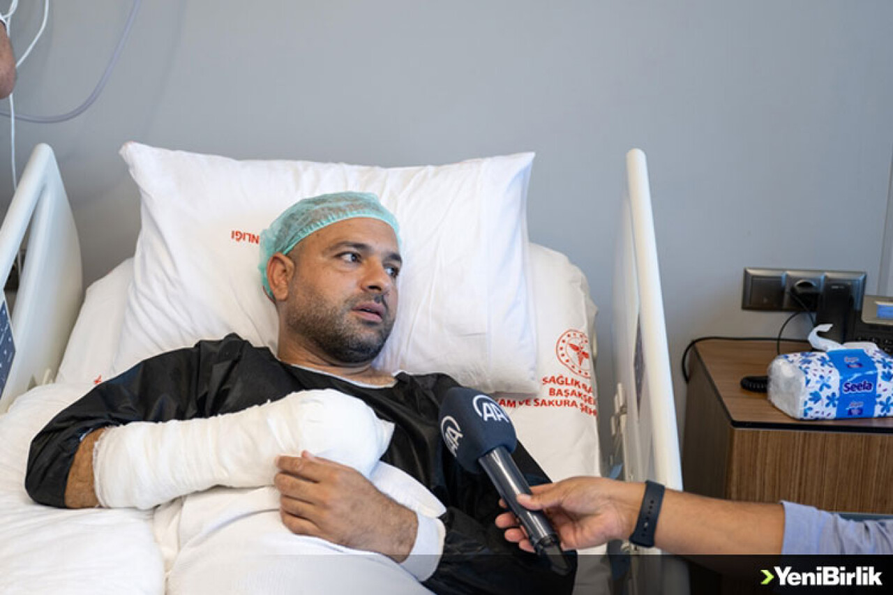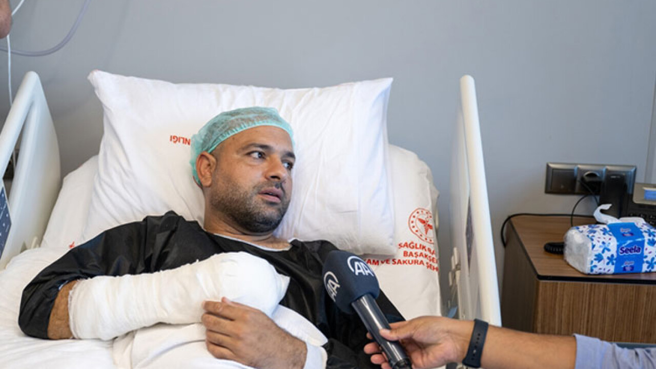 Eşref Ebu Amra'nın kapsül çarpması sonucunda elinde parçalı bir kırık oluştuğunu anlatan Altaş, "Oradaki meslektaşlarımız gerekli müdahaleleri yapmışlar. Biz de hastanemizde karşıladıktan sonra hastamızın parmağı kaldıran kirişlerinde bazı yırtıklar ve o bölgede enfeksiyon tespit ettik. Onları yeterince temizledik. Şimdi burada antibiyotik tedavisiyle beraber kırığını takip etmeye devam edeceğiz." bilgisini verdi.