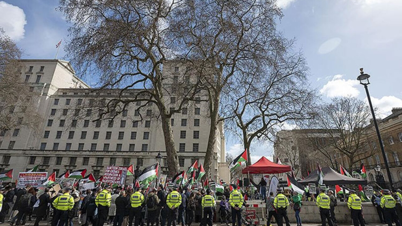Filistinlilere destek için gelen Kajsa Anckarstrom da İngiltere'nin de İsrail'e destek verdiğini kaydederek, İngiltere'de İsrail İHA'ları için parçalar üretildiğini ve bu İHA'ların Gazze'yi bombaladığını söyledi.