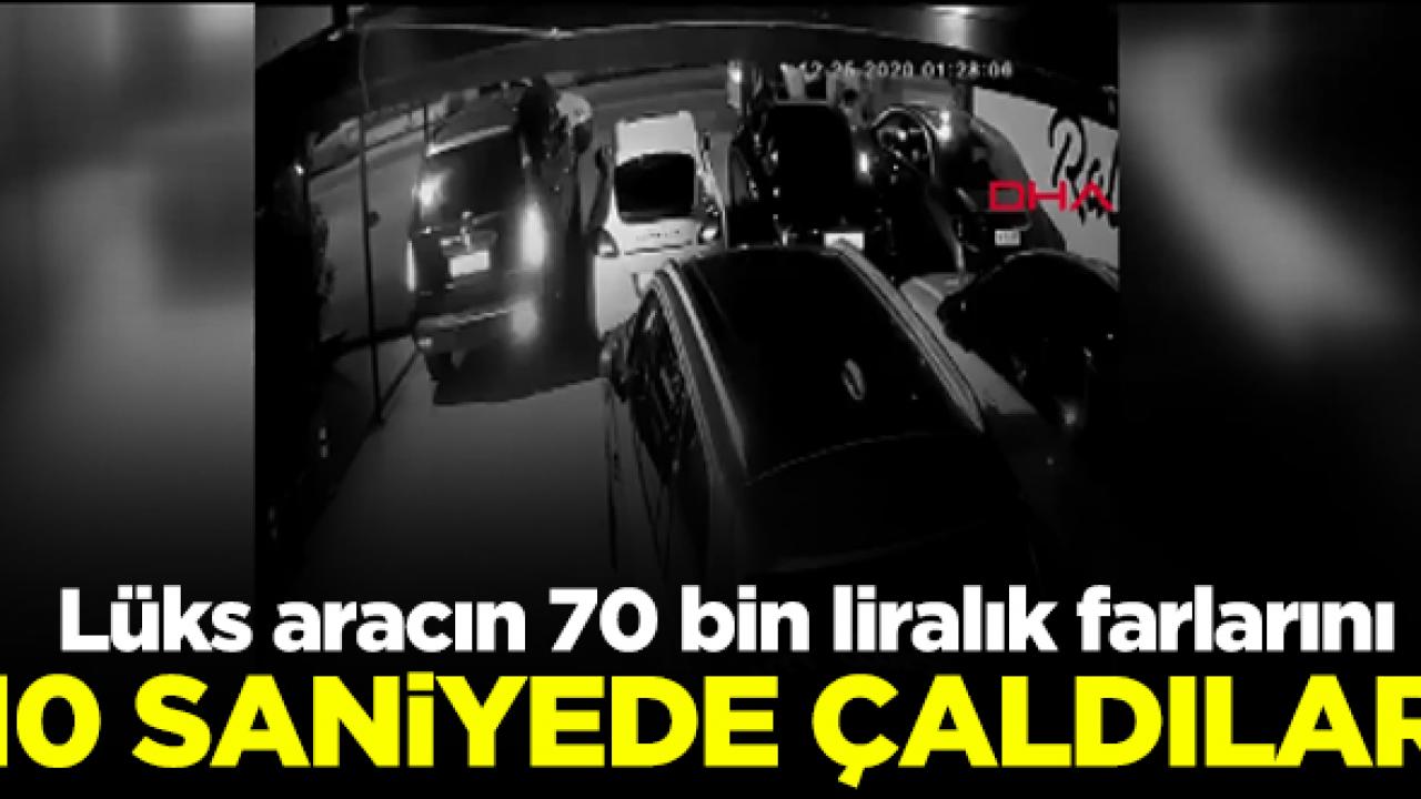 Hırsızlık anları ise güvenlik kameralarına saniye saniye yansıdı. Bir otomobille galerinin önüne gelen hırsızlardan 2 tanesi araçtan inerek lüks otomobilin yanına geliyor. Hırsızlar 10 saniyede farları çalarak geldikleri araca binerek kaçıyorlar. DHA