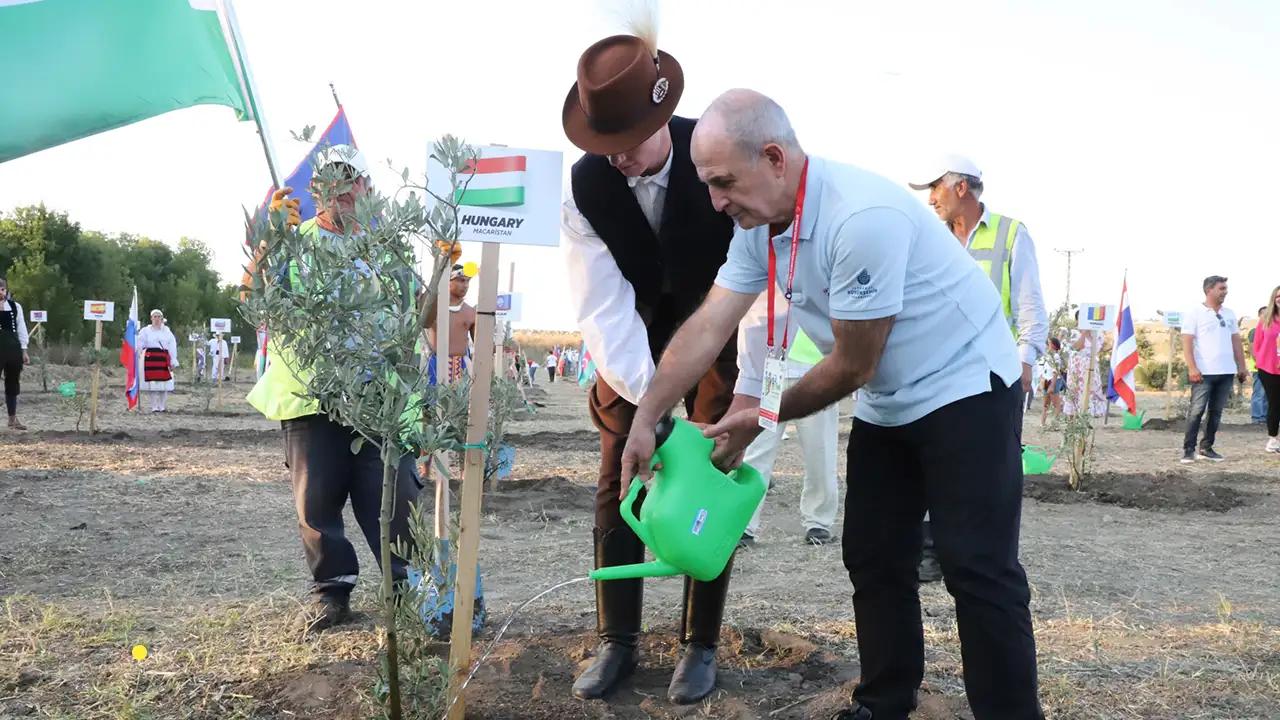 24. Uluslararası İstanbul Büyükçekmece Kültür ve Sanat Festivali’ne 100 ülkeden katılan 1550 kültür ve sanat elçisi dünya barışı için 100 zeytin ağacını toprakla buluşturdu