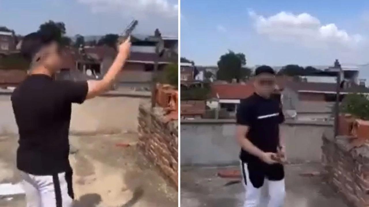 Bursa’nın Mustafakemalpaşa ilçesinde bir çocuk balkondan havaya ateş etmeye başladı. Tehlikenin farkında olmayan çocuk o anlar bir de sosyal medya hesabından paylaştı.