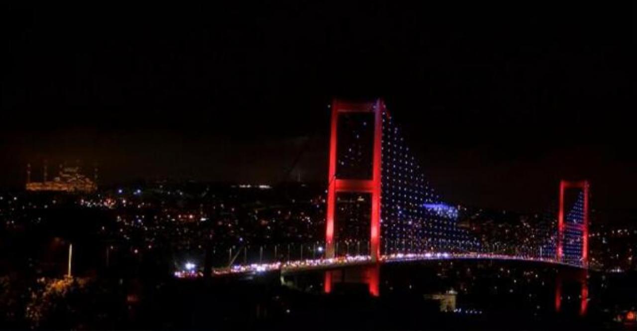 15 Temmuz Şehitler Köprüsü, '1 Temmuz Denizcilik ve Kabotaj Bayramı' dolayısıyla ışıklandırıldı. Köprü, mavi ve kırmızı renklere büründü.(DHA)