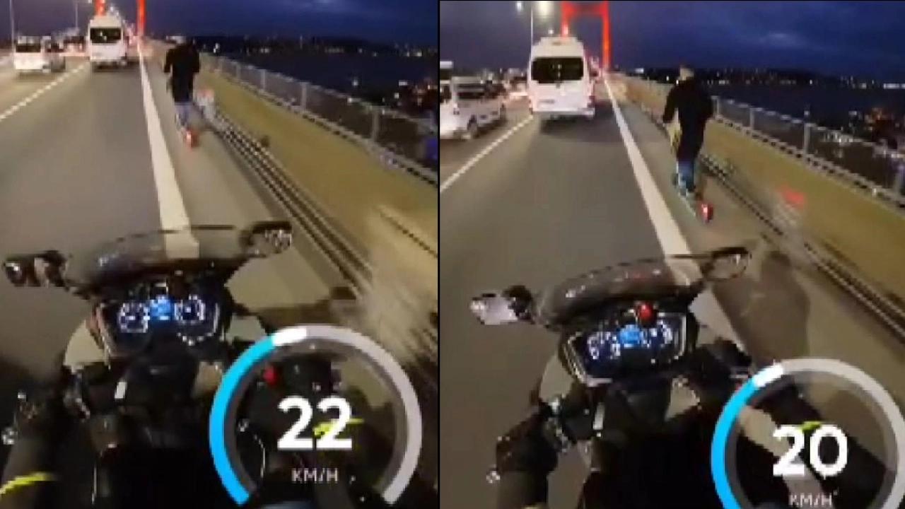Olay, 4 Ocak Perşembe günü, saat 18.00 sıralarında, 15 Temmuz Şehitler Köprüsü'nde meydana geldi. Bir sürücü, yasak olmasına rağmen skuterle köprüde ilerledi. Güvenlik ekipmanı kullanmadığı görülen skuter sürücüsü, hem kendi hayatını hem de diğer sürücüleri tehlikeye attı. O anlar seyir halindeki bir motosiklet sürücüsünün kask kamerası tarafından saniye saniye kaydedildi. Görüntülerde, sürücünün 15 Temmuz Şehitler Köprüsü'ndeki yoğun trafikte skuterle sağ şeritte ilerlediği anlar görülüyor.
