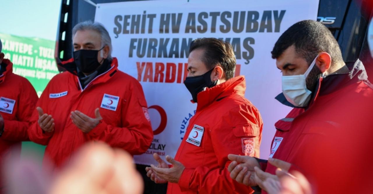 Suriye sınırında bulunan Cinderesi bölgesinde etkisini gösteren yoğun yağış nedeniyle oluşan selden etkilenen vatandaşların yaralarını sarmak için harekete geçildi. Tuzla Belediyesi ve Kızılay Tuzla Şubesi iş birliği ile bir tır dolusu kışlık kıyafet, bot ve temizlik malzemesi bölgeye gönderildi. Şehit Hv. Astsubay Furkan Yavaş’ın ismi verilen yardım tırı yola çıkmadan önce, Tuzla Belediye Binası önünde Tuzla Kaymakamı Ali Akça, Tuzla Belediye Başkanı Dr. Şadi Yazıcı, Tuzla Kızılay İlçe Başkanı Sebahattin Demirci’nin katılımlarıyla dualar edildi. Tuzla Belediye Başkanı Dr. Şadi Yazıcı, “Tuzla Belediyesi olarak Kızılayımızla, Kaymakamlığımızın koordinasyonu ile birlikte tüm yardım kuruluşlarımızla birlikte beraber o bölgeye 163’üncü tırı gönderiyoruz. Elimizden gelen her türlü yardımı yapmaya çalışıyoruz” dedi.