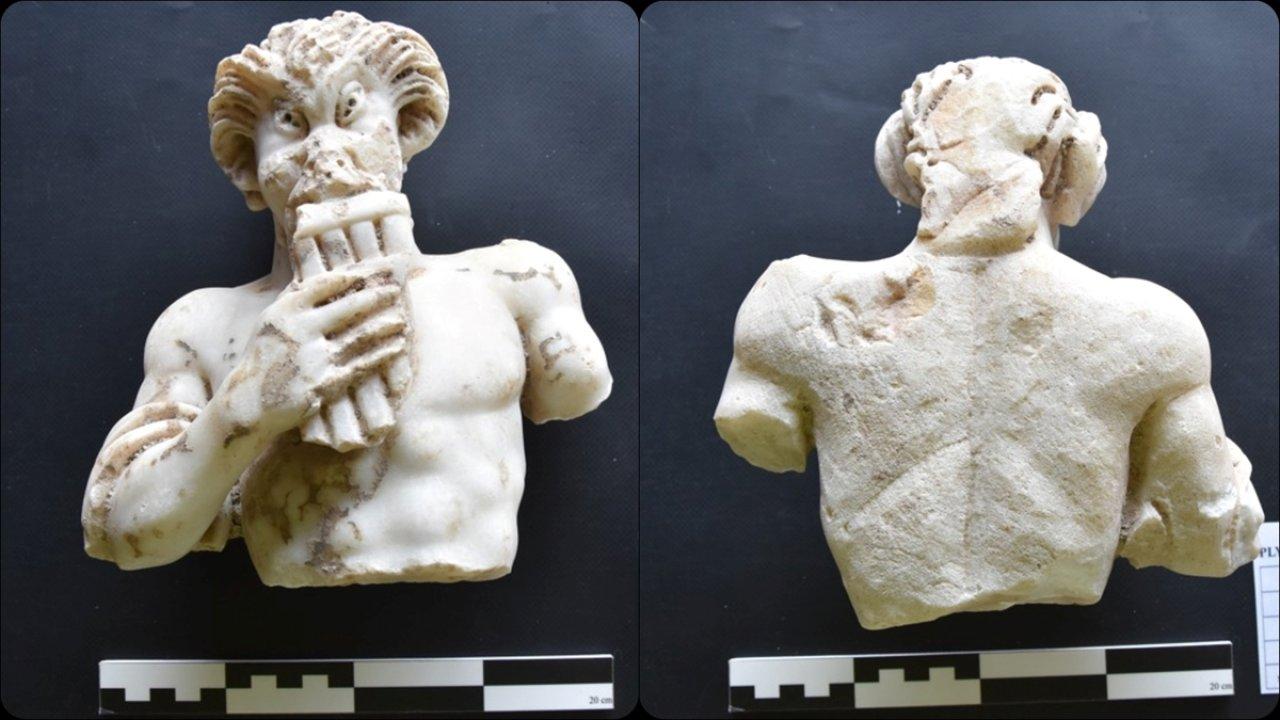 "Yüzeyden yaklaşık 2 metre 60 santimetre derinde dolgu toprak içerisinde mermer antik Yunan mitolojisinde çoban ve sürülerin tanrısı olarak bilinen Pan heykelinin parçası bulundu. 20 santimetre yüksekliğinde, 18 santimetre genişliğindeki heykelin sol kol ile gövde altı kısmının kırılmış durumda olduğu tespit edildi. Heykelin Roma dönemine tarihlendiği düşünülmekte olup gerekli uzman incelemesi sonrasında tarihleme yapılacaktır."