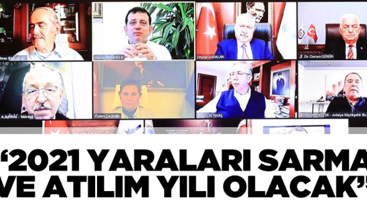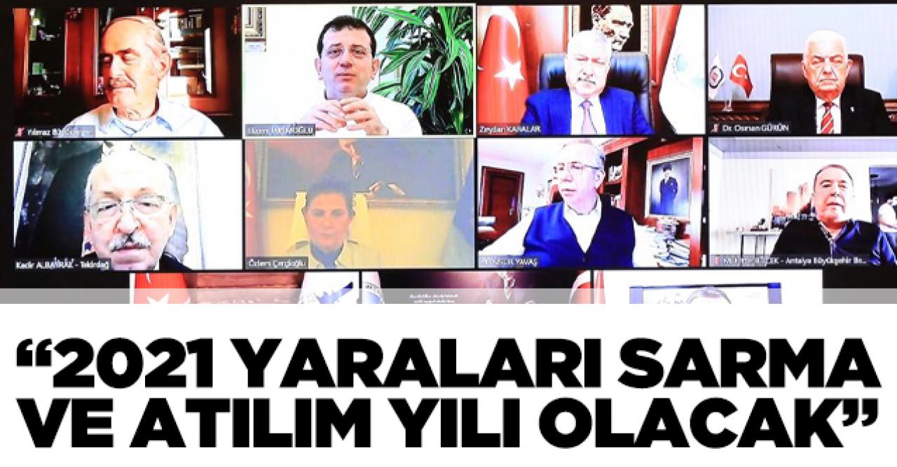 Çevrimiçi toplantıda bir araya gelen başkanlar; Kovid-19, kuraklık ve Yerel Yönetimler Reformu kaynaklı sorunları masaya yatırdı. Vatandaşların yeni yıllarını şimdiden kutlayan Başkanlar, ortak açıklamalarında, “11 Büyükşehir Belediyesi olarak, bu zor ve sancılı süreçte hep vatandaşlarımızın yanında olduk. İktidar kanadından gelen her türlü engellemeye rağmen, geliştirdiğimiz sosyal projelerle sizlerin yanında olmayı başardık. Bunu başarırken, gücümüzü sizden aldık. 2021 de aynen 2020 gibi, ‘dayanışma yılı’ olacak. Bu kez dayanışmanın yanına, ‘yaraları sarma ve ekonomik atılım yapma’yı da koyacağız. Bunu da her türlü engellemelere, baskı kurmalara, algı operasyonlarına, ‘trol’ saldırılarına karşı hep birlikte başaracağız” ifadelerini kullandı.