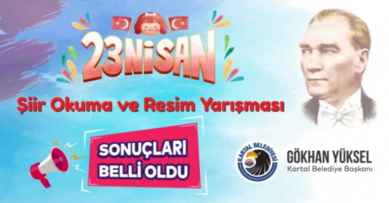 Kartal Belediyesi Kreş Müdürlüğü’nün Büyük Önder Gazi Mustafa Kemal Atatürk'ün tüm dünya çocuklarına armağan ettiği 23 Nisan Ulusal Egemenlik ve Çocuk Bayramı kapsamında düzenlediği ’23 Nisan’ temalı şiir okuma ve resim yarışmasının sonuçları belli oldu.