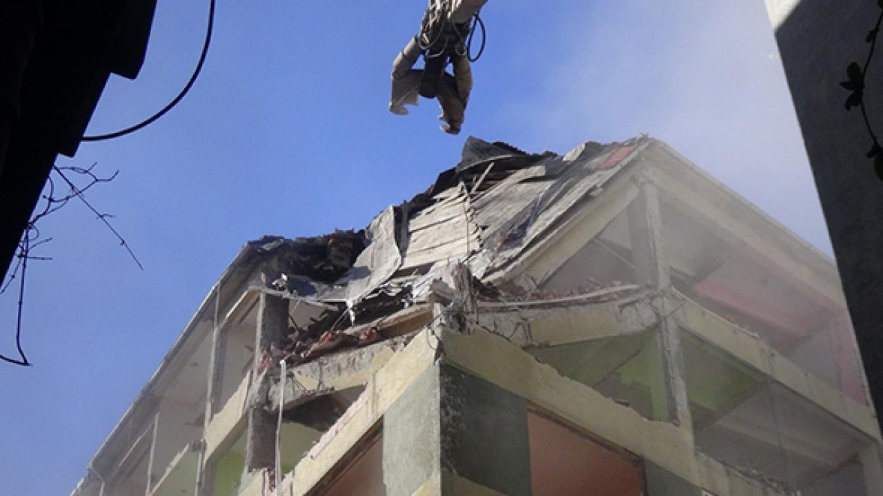 Silivri Piri Mehmet Paşa Mahallesi Atatürk Caddesi’nde bulunan 6 katlı 40 yıllık binaya ağır hasarlı raporunun verilmesinin ardından yıkım işlemi gerçekleştirildi. Vatandaşları oluşabilecek herhangi bir tehlikeden uzak tutmak için ekipler uyarı anonsları yaptı. Yıkımın yapılacağı çevrede bulunan 2 katlı bir bina ise tedbir amaçlı boşaltıldı. Gerekli güvenlik önlemlerin alınmasından ardından dar sokakta bulunan 6 katlı 40 yıllık binanın belediye ekiplerince kontrollü olarak yıkımı başlatıldı. Ayrıca, yıkım öncesinde yıkılacak binanın balkonunda asılı Türk Bayrağı'nı gören belediye personeli, o kata çıkarak bayrağı aldı ve katlayarak ceketin cebine koyması ise dikkatlerden kaçmadı. DHA