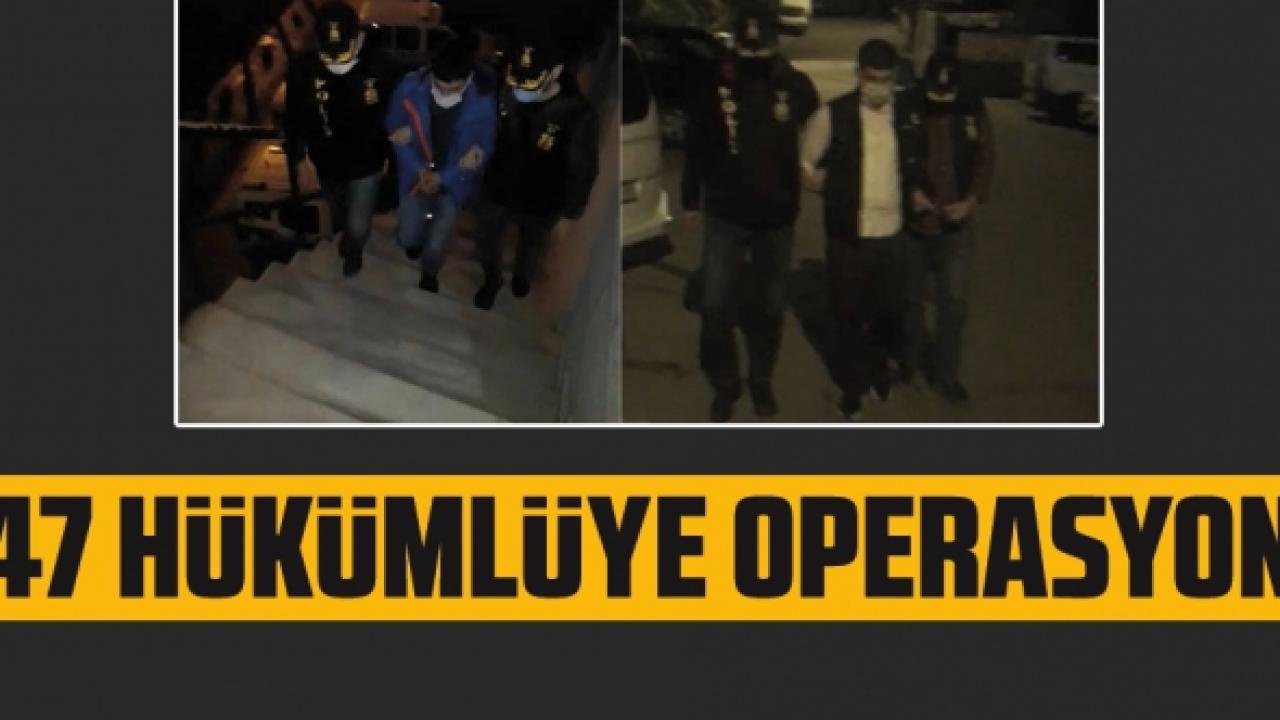 Asayiş Şube Müdürlüğü, Aranan Şahıslar Büro Amirliğince 14 Ocak 2021 tarihinde aranan hükümlüleri yakalamak için operasyon düzenledi. Polis ekipleri daha önceden tespit edilen 80 adrese baskın yaptı. Baskınlarda tutuksuz yargılanırken haklarında hapis cezası kesinleşen firari durumdaki 47 kişiyi gözaltına aldı. Gözaltına alınanlar arasında Hırsızlık suçundan 24 yıl 3 ay hapis cezası kesinleşen Ferhat K., hırsızlık suçundan 23 yıl 2 ay hapis cezası kesinleşen Serkan Ç., dolandırıcılık suçundan 16 yıl 8 ay hapis cezası kesinleşen Fırat K., hırsızlık suçundan 15 yıl hapis cezası kesinleşen Ali Y., gasp suçundan 14 yıl 7 ay hapis cezası alan Muhammet D. de bulunuyor. Gözaltına alınan diğer hükümlülerden bazıları; Kadir K.;12 Yıl Hırsızlık, Bülent E. 9 Yıl 1 Ay Dolandırıcılık, Coşkun Ü.;9 Yıl Dolandırıcılık, Ozan Y.;7 Yıl 8 Ay Yaralama, Ahmet B.;7 Yıl 6 Ay Kasten Öldürme, Hasan T.;6 Yıl 8 Ay Yağma, Kadir Ç.;6 Yıl 6 Ay Hırsızlık, Ali İ. Y.;6 Yıl 3 Ay Hırsızlık, Kazım D. D.;6 Yıl 3 Ay Kişi Hür. Yoksun Kılma, Cemal N.;6 Yıl Hırsızlık