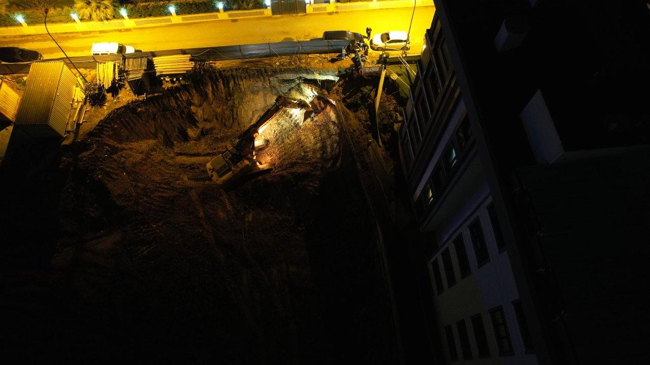 Olay, saat 18.30 sıralarında İstasyon Mahallesi'nde meydana geldi. İddiaya göre, kentsel dönüşüm kapsamında çalışmaları süren inşaatın temel alanında toprak kayması meydana geldi. Çökmenin yaşandığı yerde bulunan 5 katlı binanın bahçe ve çevresi de etkilenerek burada da toprak kaydı ve istinat duvarı çöktü. Bina sakinleri kendilerini sokağa attı. İhbar üzerine olay yerine gelen zabıta ekipleri çevrede önlem alarak iki sokağı araç trafiğine kapattı. Öte yandan toprak kaymasının yaşandığı inşaat alanı bitişiğinde bulunan bir yolda ise çatlakların oluştuğu görüldü. Firma yetkilileri istinat duvarının tamamen çökmemesi için iş makinaları ile çalışmalara başladı. İnşaat sahası ve çalışmalar havadan dron ile görüntülendi.