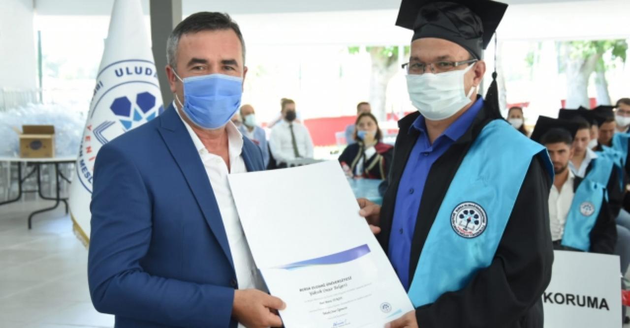 Bursa'da emekli astsubay Murat Turan (51), Bursa Uludağ Üniversitesi Yenişehir İbrahim Orhan Meslek Yüksekokulu Dış Ticaret Bölümü’nü birinci olarak tamamlayıp, mezuniyet töreninde diplomasını aldı.