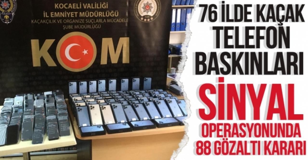 Yurt dışından temin ettikleri cep telefonlarını yasa dışı yollar ile ülkemize getirerek haksız kazanç elde eden, devletimizi vergi kaybına uğratan ve vatandaşlarımızın mağdur olmasına neden olan kaçakçılık suçunu işledikleri belirlenen şahıs ve suç grupları ile kaçak cep telefonlarını piyasaya süren işyerlerine yönelik olarak ülke genelinde eş zamanlı olarak “SİNYAL” kod isimli operasyon gerçekleştirildi.