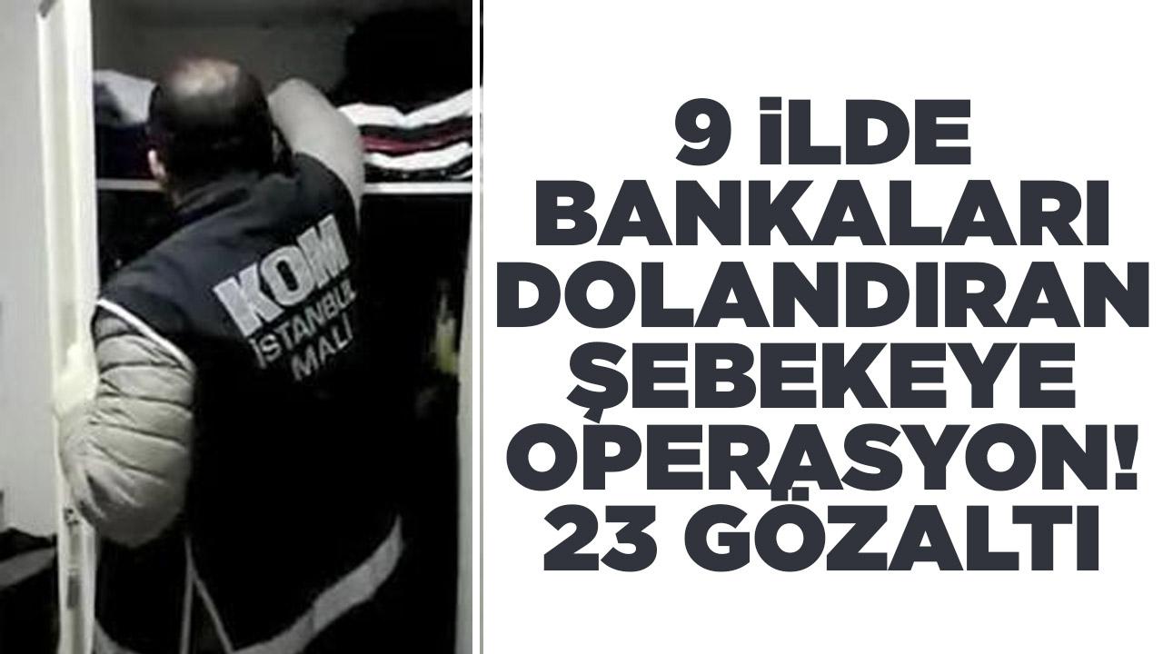 İSTANBUL merkezli 9 ilde usulsüz işlem yaparak bankaları 100 milyon lira dolandıran şüphelilere yönelik operasyon düzenlendi. Operasyonda 23 kişi gözaltına alındı.