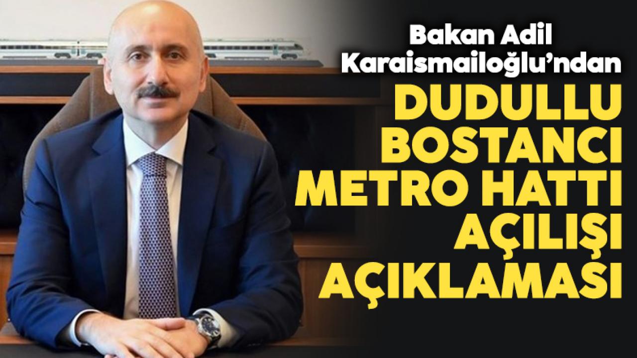 ULAŞTIRMA ve Altyapı Bakanı Adil Karaismailoğlu, İstanbul Büyükşehir Belediyesi tarafından bugün açılacak olan Bostancı-Dudullu metro hattına ilişkin, "Şu an hizmet veren metro yatırımlarının hepsi 2019 yılı öncesinde yapıldı. Bugün Bostancı-Dudullu metro hattının açılışını yapacaklar. Biz 2019 yılında burayı da yüzde 70'lik ilerleme oranıyla devretmiştik aradan 4 yıl geçti bugün bitiyorlar" dedi.