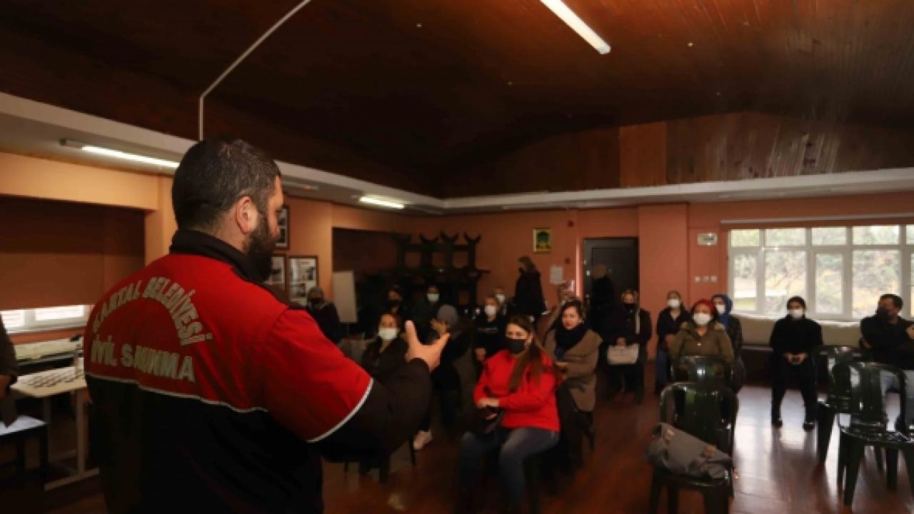 Kartal Belediyesi Sivil Savunma Uzmanlığında görev alan ve profesyonel arama-kurtarma ekibinde bulunan uzman personelin verdiği ‘Afet Bilinçlendirme Eğitimi’nde afet öncesinde yapılması gerekenler ve planlamalar anlatıldı. Evde tehlike avının nasıl yapılacağı ve afet durumunda toplanma yerleri ile ilgili bilgi veren uzmanlar; olası bir İstanbul depremi sırasında ilk 72 saatin çok önemli olduğunu vurguladı.