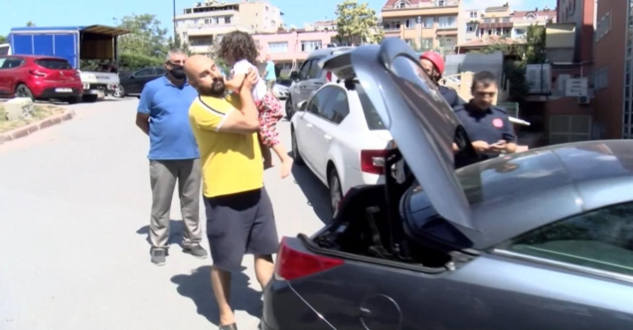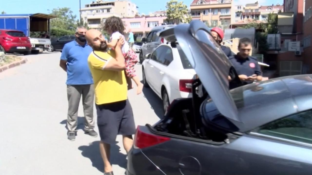 Zeytinburnu'nda babası tarafından hastaneye aşı yaptırılmaya getirilen 3 yaşındaki Ravza Zengin, babasının tekrar hastaneye gitmesiyle otomobilde mahsur kaldı. Baba Mustafa Zengin otomobilin kilidini açınca, itfaiye ekipleri camı kırarak Ravza'yı kurtardı