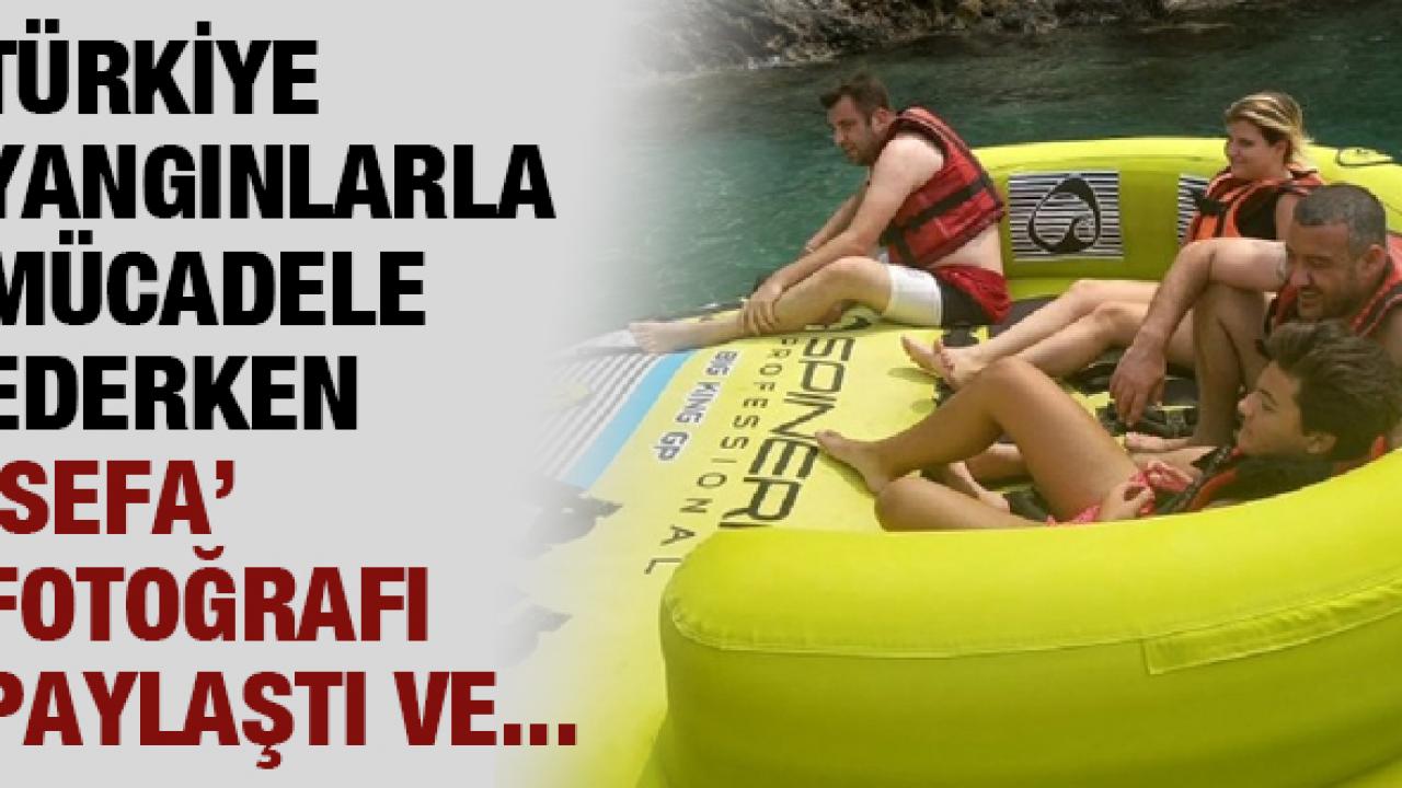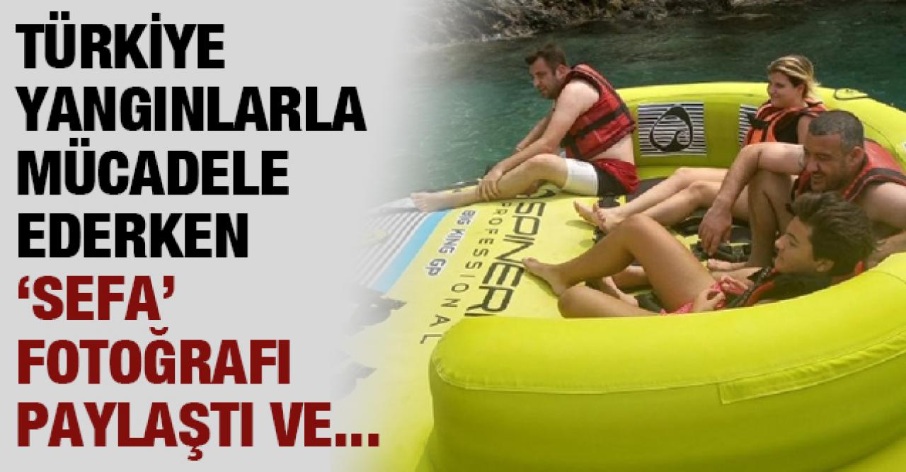 Türkiye'de çıkan 100'den fazla yangın ile mücadele sürerken AK Parti Büyükçekmece Yönetim Kurulu Üyesi Bahadır Eşer'den şoke eden bir paylaşım geldi. Eşer, yakınları ile bindiği bir şişme botun fotoğrafını paylaşarak "Fethiye yangın yeri" notunu iliştirdi. Bu kare ve yazılanlar sosyal medyada tepkiyle karşılandı.