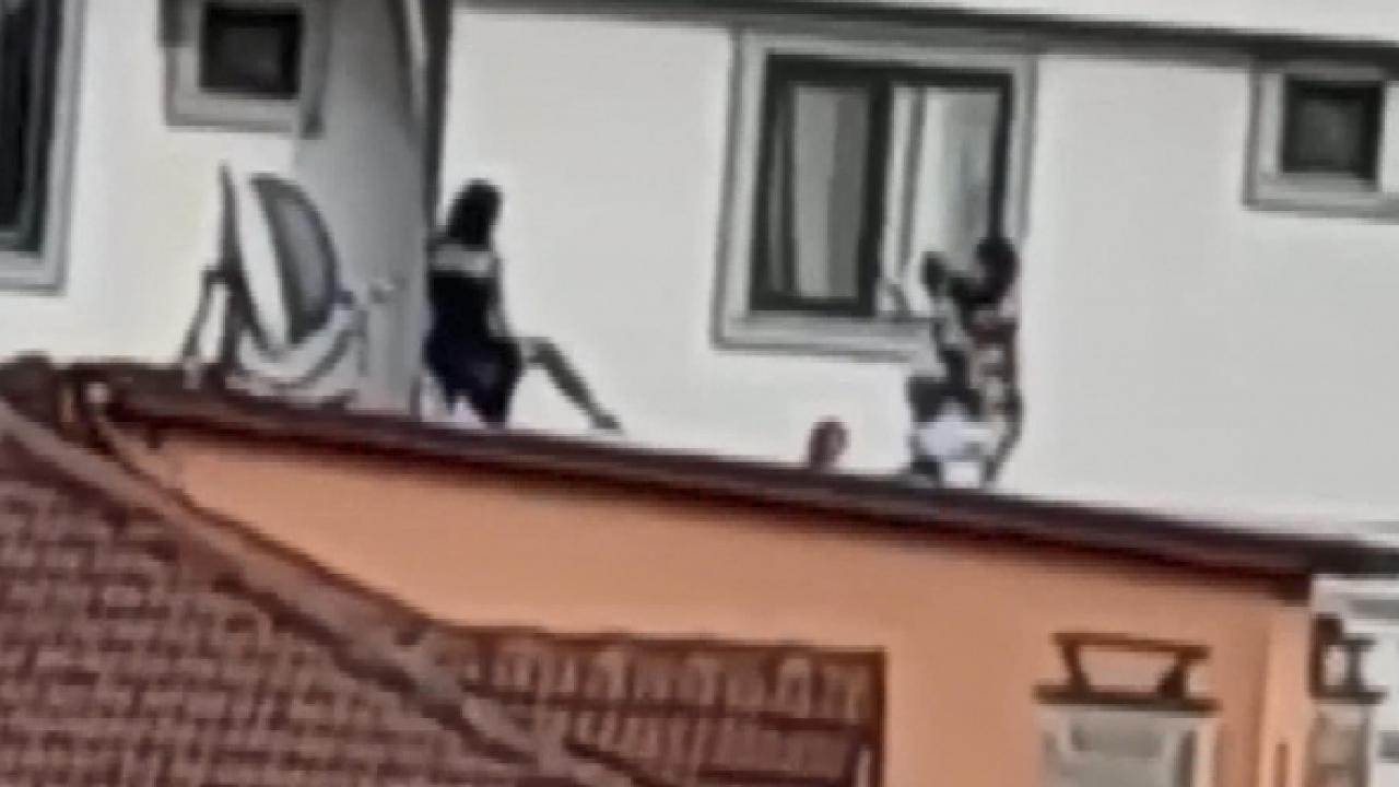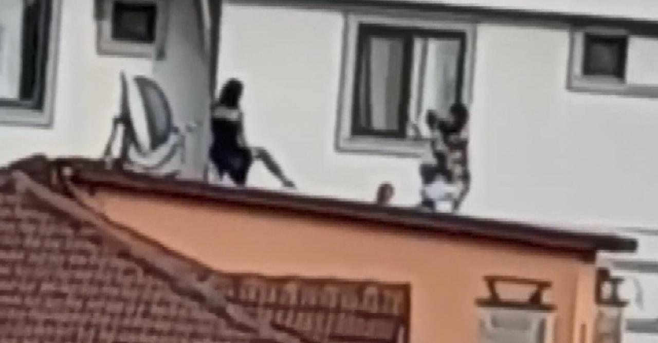 Yayla Mahallesi'nde önceki gün öğle saatlerinde 2 katlı binanın çatısına çıkan 2 kız, fotoğraf çekmeye başladı. Düşme tehlikesiyle karşı karşıya olan gençler, düşme tehlikesine rağmen rahat tavırlarla fotoğraf çekti. Sosyal medya hesaplarından ilginç paylaşımlar yapmak amacıyla çatıda fotoğraf çeken gençler, çevredeki bir kişi tarafından cep telefonu kamerasıyla görüntülendi.