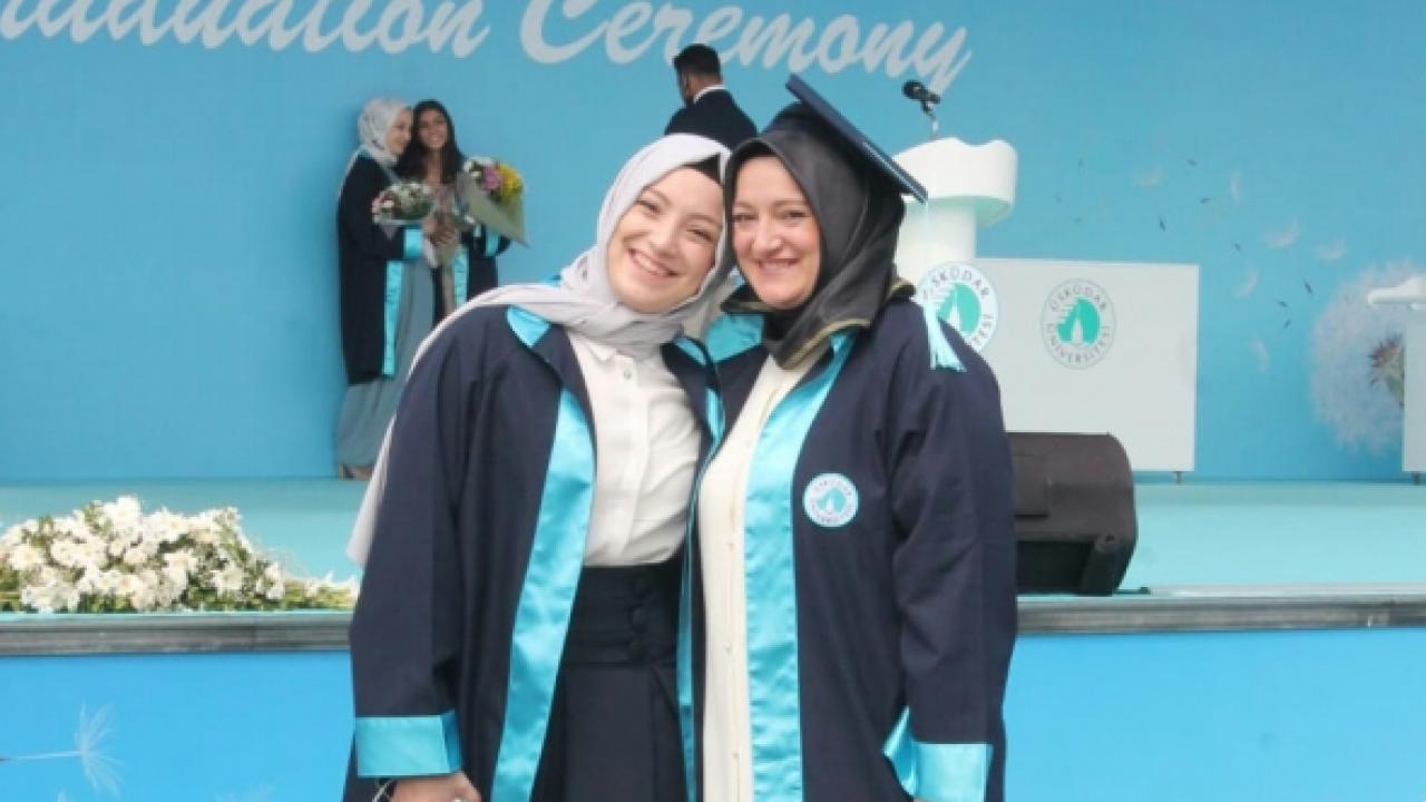 1-2-3 Eylül tarihlerinde gerçekleşen Üsküdar Üniversitesi 7. ve 8. Dönem Mezuniyet Töreni keyifli anlara sahne oldu. Laboratuvar Teknolojisi programını bitiren Rabia Acar, Psikoloji bölümünü bitiren kızı Rabia Acar ile birlikte mezun olmanın mutluluğunu yaşadı. Evlendiğinde ilkokul mezunu olduğunu ifade eden Fatma Acar, ikinci üniversitesini kızıyla aynı okulda okuyarak mezun oldu. Acar, “Sağlık Hizmetleri Meslek Yüksek Okulu Laboratuvar Teknolojisi programından 7.dönemde 42 yaşımda mezun oldum. Kızım Rabia Acar, 23 yaşında ve İnsan ve Toplum Bilimleri Fakültesi İngilizce Psikoloji bölümünden bu sene mezun oldu. Ben evlendiğimde ilkokul mezunuydum, eğitim hayatım 2005 yılında tekrar başladı. İlk olarak açık öğretimden ortaokul ve liseyi tamamladım. Daha sonra ise Anadolu Üniversitenden açık öğretim ile Adalet okudum. İlkokulda çok başarılı bir öğrenciydim, öğretmenlerim aileme okumam için fikir vermişlerdi fakat maddi imkânsızlık ve köy hayatındaki yetersizlikler nedeniyle okuyamadım. Evlendikten sonra İstanbul’da bir hastanenin kafeterya bölümünde çalışmaya başladım. Burada sağlık alanına olan ilgimi fark ettim ve tekrar üniversite sınavına hazırlandım. Tercihlerim arasında %75 bursla Üsküdar Üniversitesi Laboratuvar Teknolojisi bölümüne yerleştim.” dedi.