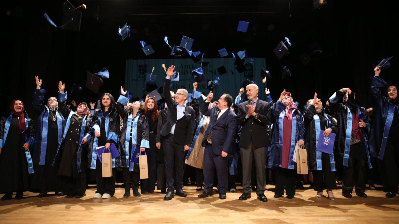 Haliç Üniversitesi Alibeyköy Kampüsü’nde bir ay boyunca farklı fakültelerin akademisyenlerinden eğitimler alan, kampüs hayatını deneyimleme şansı bulan annelere, mezuniyet belgelerini Eyüpsultan Belediye Başkanı Deniz Köken, Eyüpsultan Kaymakamı İhsan Kara ve Haliç Üniversitesi Sağlık Bilimleri Fakültesi Dekanı İrfan Papila verdi.