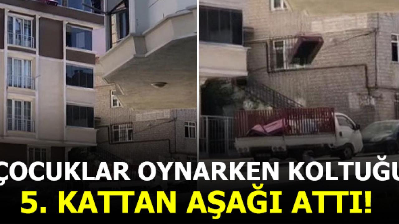 Arnavutköy'de bir hurdacı satın aldığı eski koltuğu merdivenlerden indirmek yerine binanın 5'inci katından aşağıya attı. Sokakta oynayan çocukların çok yakınına düşen koltuğun düşme anları cep telefonu kamerasına yansıdı.