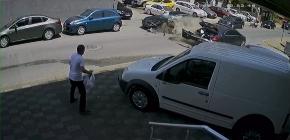 Öte yandan kaza güvenlik kamerasına saniye saniye yansıdı. Güvenlik kamerası görüntülerinde kazaya sebep olan otomobilin hızla geldiği ve otomobillere çarptığı görülüyor. Ayrıca cadde üzerinde yürüyen bir kişi, otomobilin hızla geldiğini görünce son anda kaçarak otomobillerin altında kalmaktan kurtuluyor.