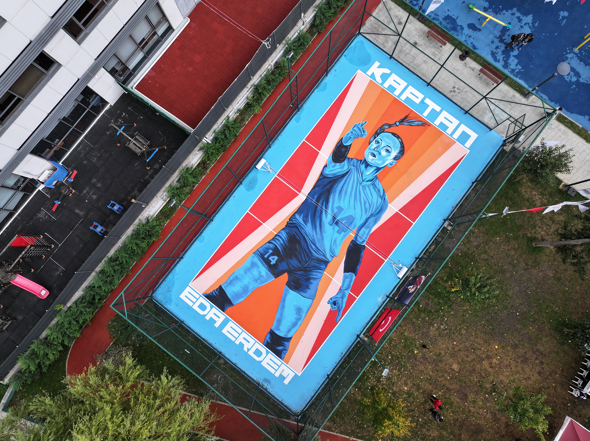 Atatürk Mahallesi’nde Dicle ve Fırat caddelerinin kesişiminde bulunan 4 bin 902 metrekare büyüklüğündeki Eda Erdem Parkı’nın içerisindeki voleybol sahasına da ünlü voleybolcunun resmi çizildi.